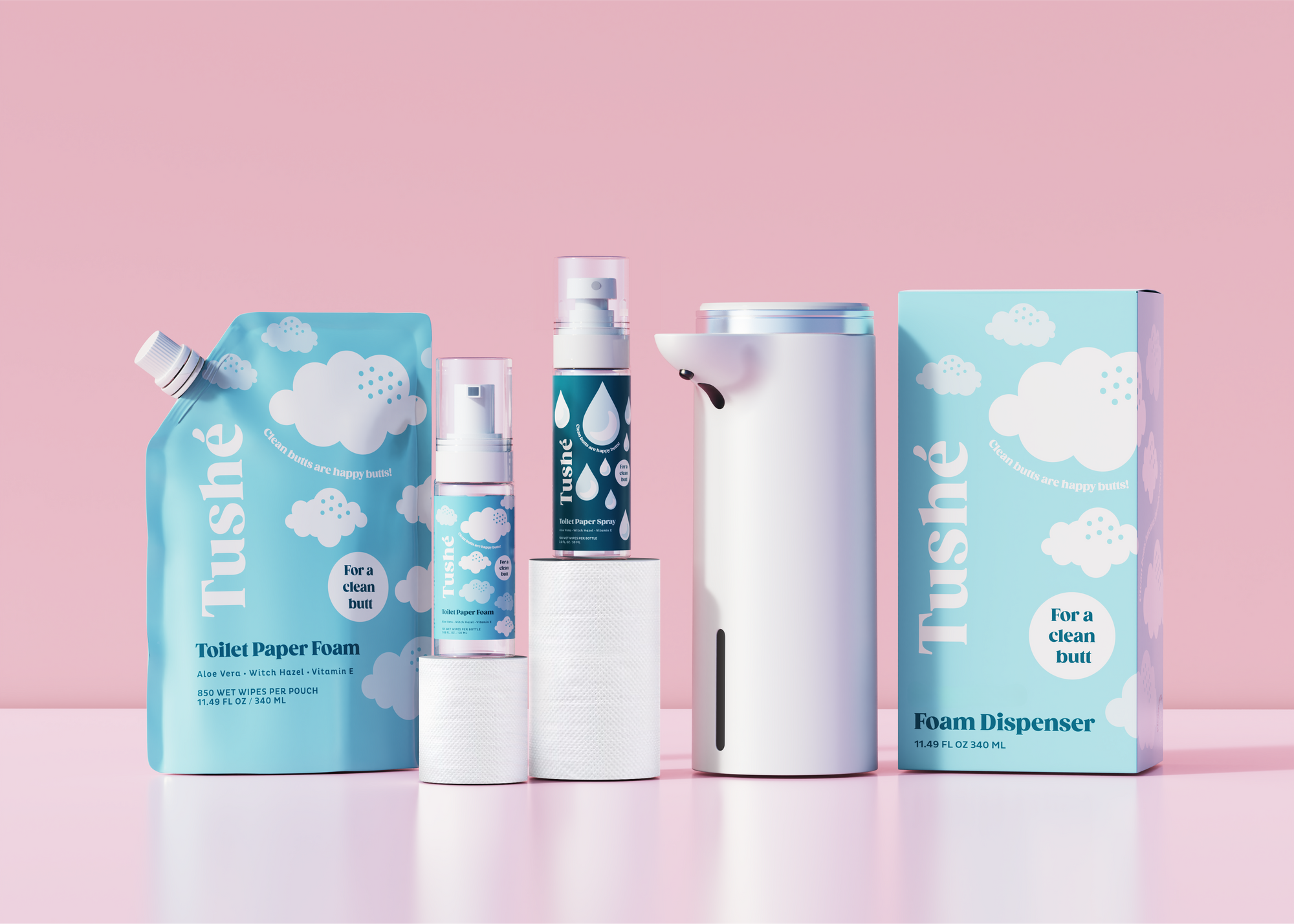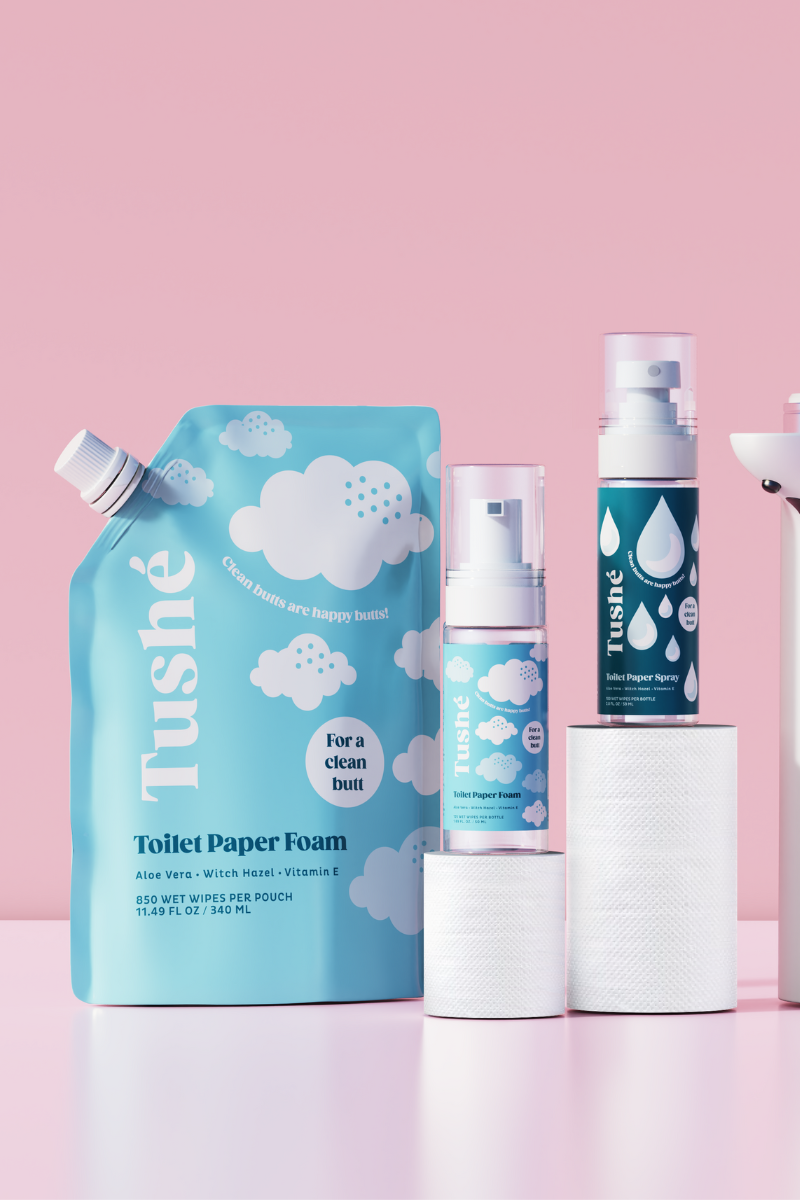 In 2020, we had this crazy idea to disrupt the wet wipe industry by combining foam with toilet paper to create an eco-friendly alternative. Our Kickstarter campaign took off, and the global community embraced our mission. With overwhelming support, we reached our funding goal within days, and Tushé was born!